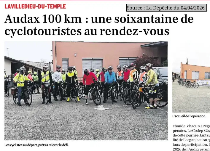 Article de presse paru le 4 avril 2025 dans La Dépêche du Midi au sujet du brevet initiation Audax 100 km à vélo organisé par le Rayon Théopolitain.